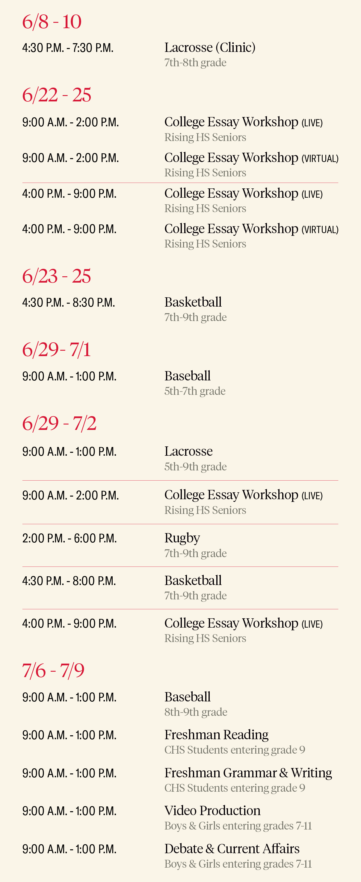 Chaminade High SchoolSummer Camps Open to all Chaminade students. Open to all boys. Book Now Open to all boys and girls. Contact us.camps@chaminade-hs.org